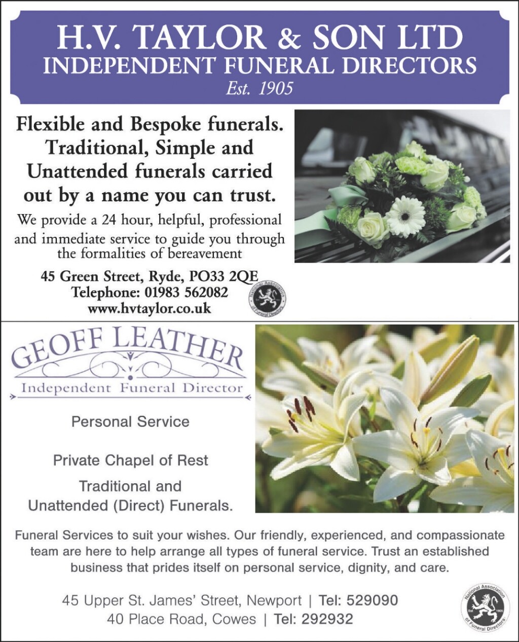 FUNERAL DIRECTORS 45 UPPER ST JAMES STREET